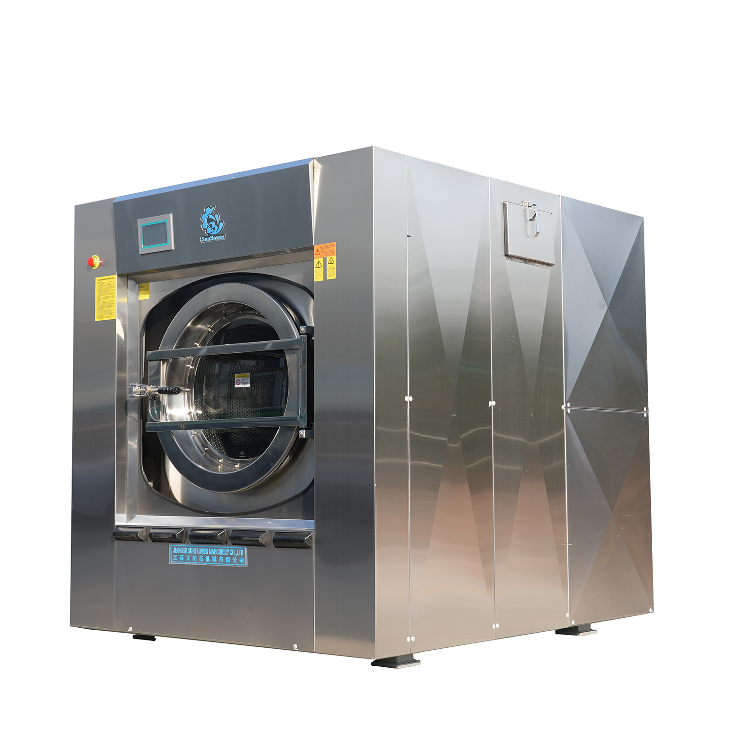 El diseño racional de los procedimientos de lavado debe aprovechar las características de funcionamiento en múltiples etapas de la lavadora-extractor para lograr una limpieza escalonada. En la etapa de prelavado, la lavadora-extractor inyecta agua a temperatura ambiente y funciona a baja velocidad (50 rpm) durante 5 minutos, limpiando la suciedad superficial a través del sistema de rociado. Este paso puede reducir el consumo de detergente en la etapa de lavado principal en un 30%. La etapa de lavado principal se divide en tres progresivos: el período de separación mecánica (80 rpm, 10 minutos), que utiliza la fuerza mecánica generada por la rotación del tambor para separar las manchas resistentes; el período de reacción química (agua a 60°C, 15 minutos), que mantiene una temperatura constante mediante el dispositivo de calentamiento para garantizar que los enzimas y los tensioactivos an su efecto;y el período de desinfección (alta temperatura de 90°C, 8 minutos), que aprovecha el sistema de calentamiento por vapor del equipo para lograr una desinfección física, eliminando el 99.9% de los patógenos. La etapa de enjuague adopta un modo combinado de "3 inyecciones de agua + centrifugación a alta velocidad". Después de cada inyección de agua, la velocidad del tambor se incrementa gradualmente hasta 1200 rpm, reduciendo la humedad de las sábanas a menos del 30% y sentando las bases para la etapa de secado posterior.